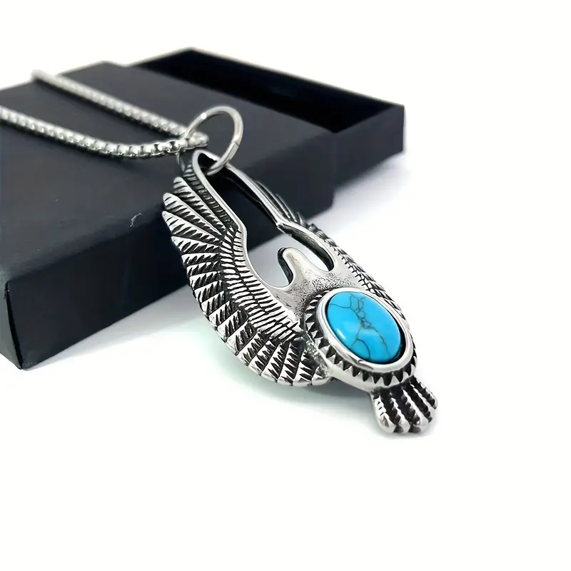 Vintage κολιέ με γαλάζιο μενταγιόν από ανοξείδωτο ατσάλι