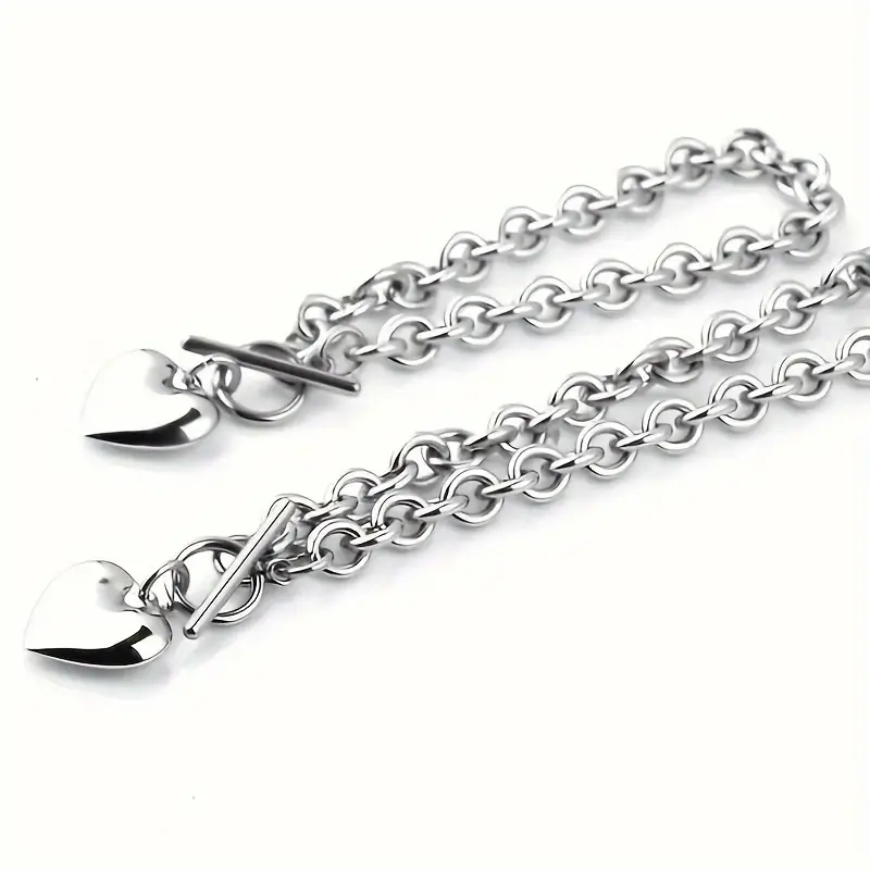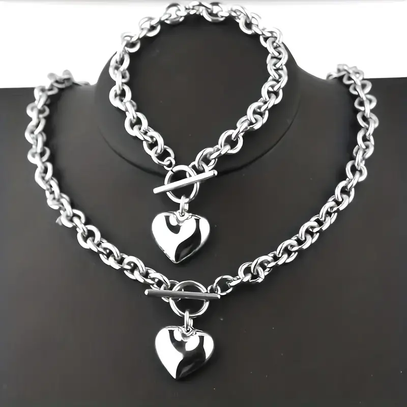 Σετ ιδιαίτερο βραχιόλι και κολιέ με καρδούλα από ανοξείδωτο ατσάλι