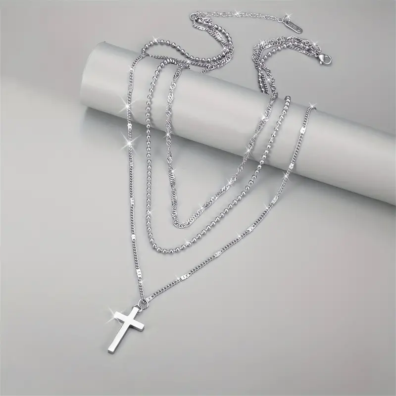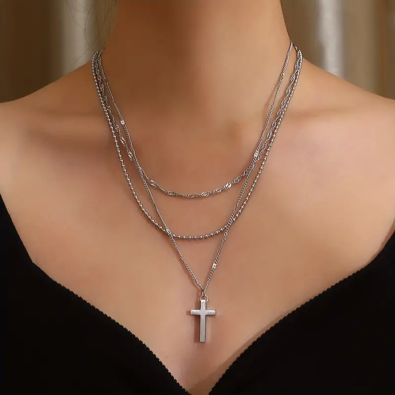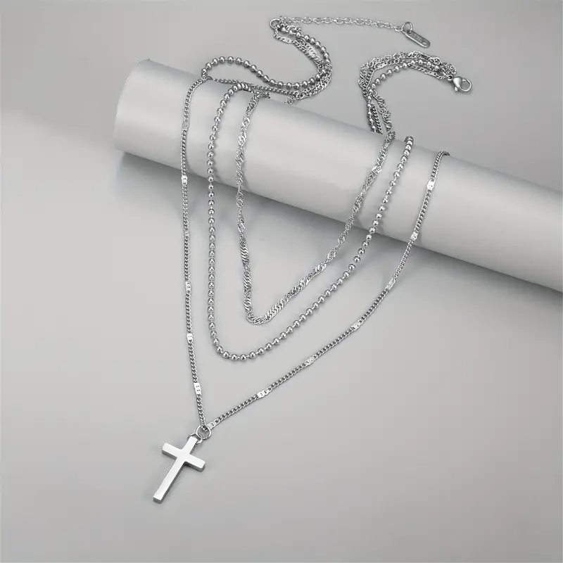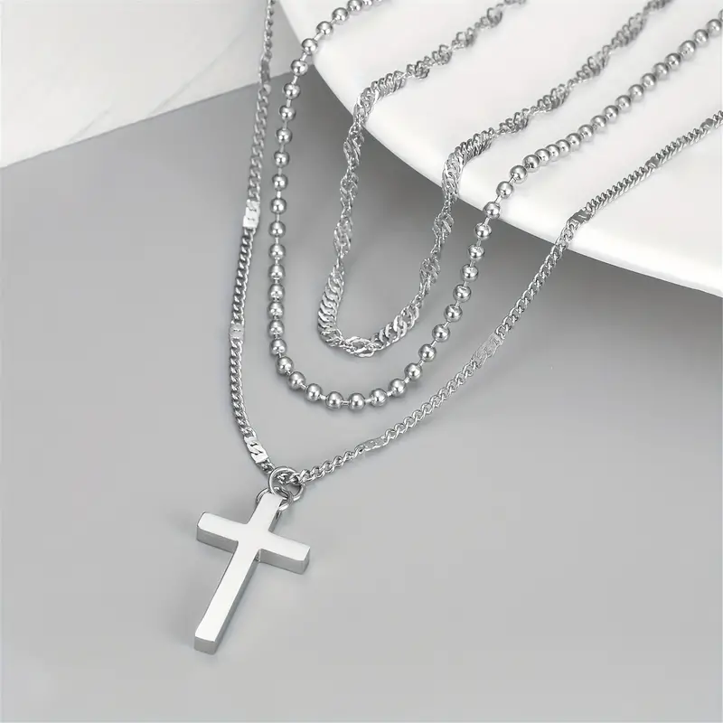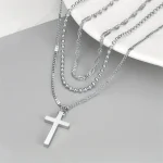 Κολιέ τριπλό με σταυρό από ανοξείδωτο ατσάλι