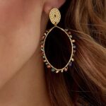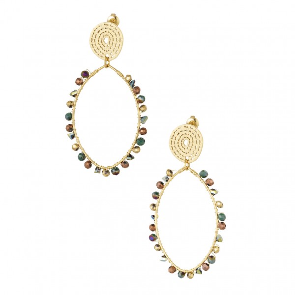Χειροποίητα οβάλ επίχρυσα σκουλαρίκια με κρύσταλλα από ανοξείδωτο ατσάλι επιχρυσωμένα 24Κ