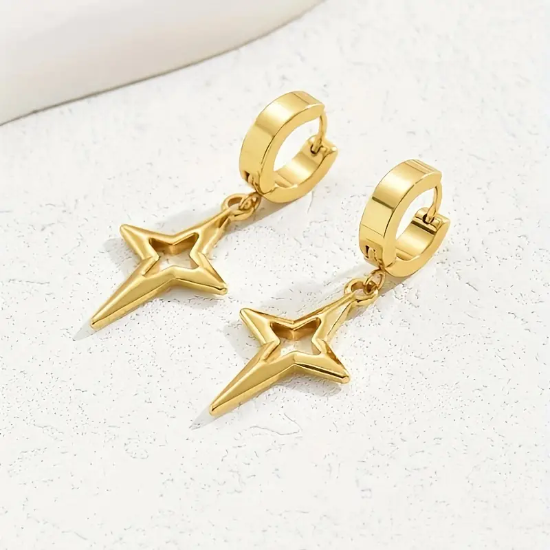 Σκουλαρίκια με σχήμα αστέρι επίχρυσα 14Κ από ανοξείδωτο ατσάλι