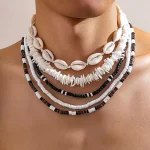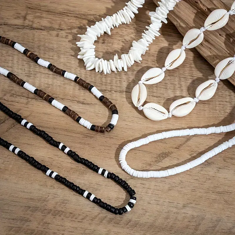 Σετ από 5 κολιέ με κοχύλια και ξύλινες χάντρες