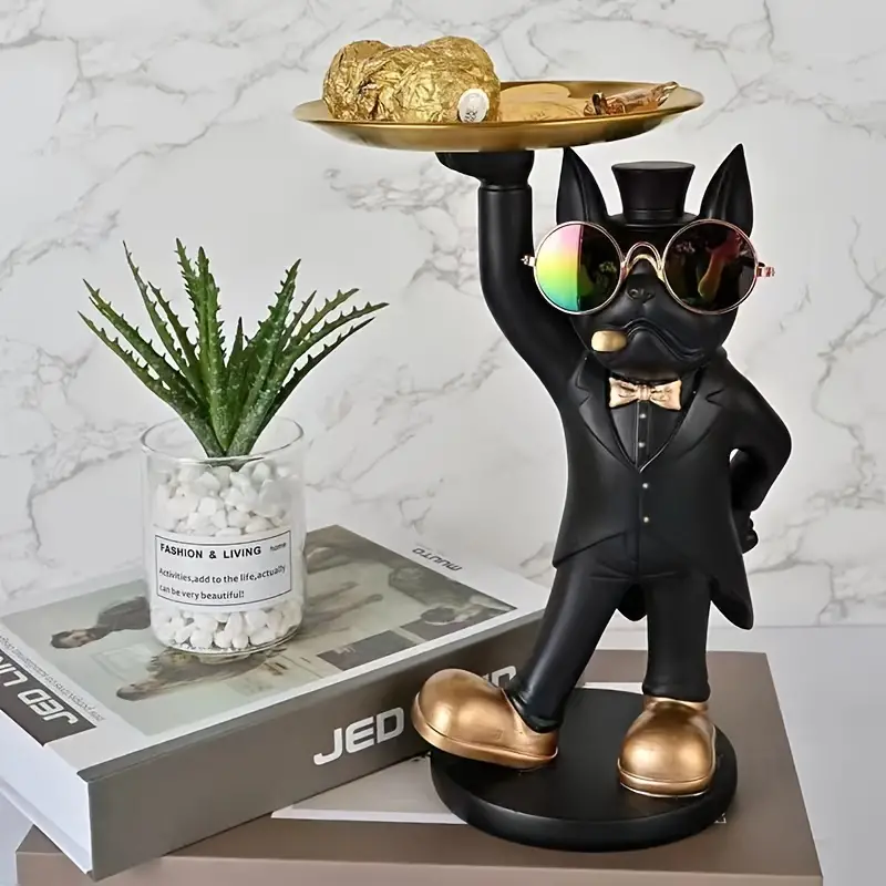bulldog όρθιο χαριτωμένο διακοσμητικό με δίσκο Υ 26εκ * Μ17*12 εκ